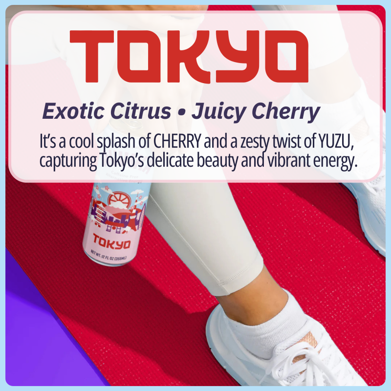 It’s a cool splash of cherry and a zesty twist of yuzu, capturing Tokyo’s delicate beauty and vibrant energy.